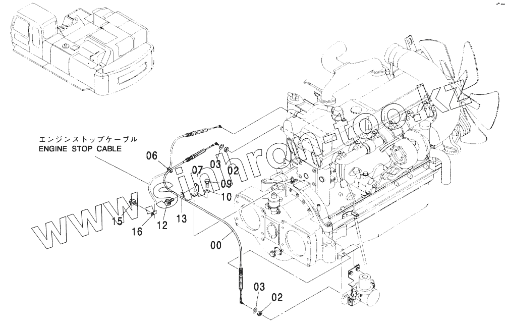 Каталог запасных частей к технике: Hitachi ZX-600. ENGINE CONTROL CABLE