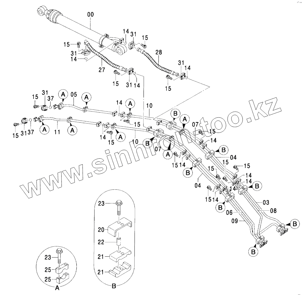 Каталог запасных частей к технике: Hitachi ZX-600. FRONT PIPING (LONG BOOM)