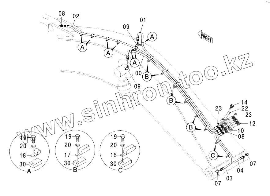 Каталог запасных частей к технике: Hitachi ZX-600. LUBRICATE PIPING (LONG BOOM)