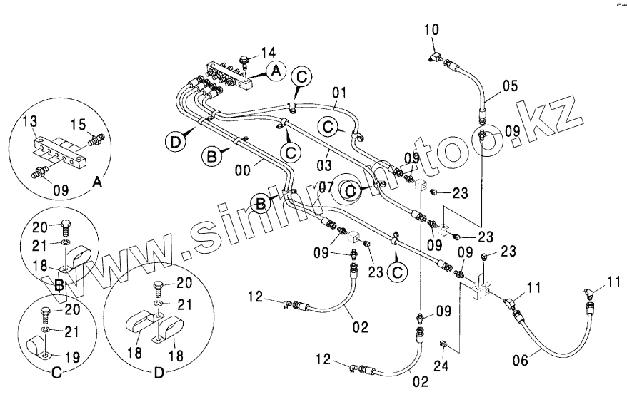 Каталог запасных частей к технике: Hitachi ZX-600. LUBRICATE PIPING (SHORT ARM. BE ARM)