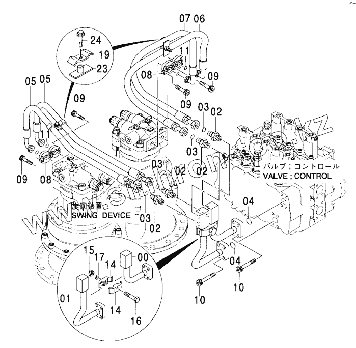 Каталог запасных частей к технике: Hitachi ZX-600. MAIN PIPING (1)