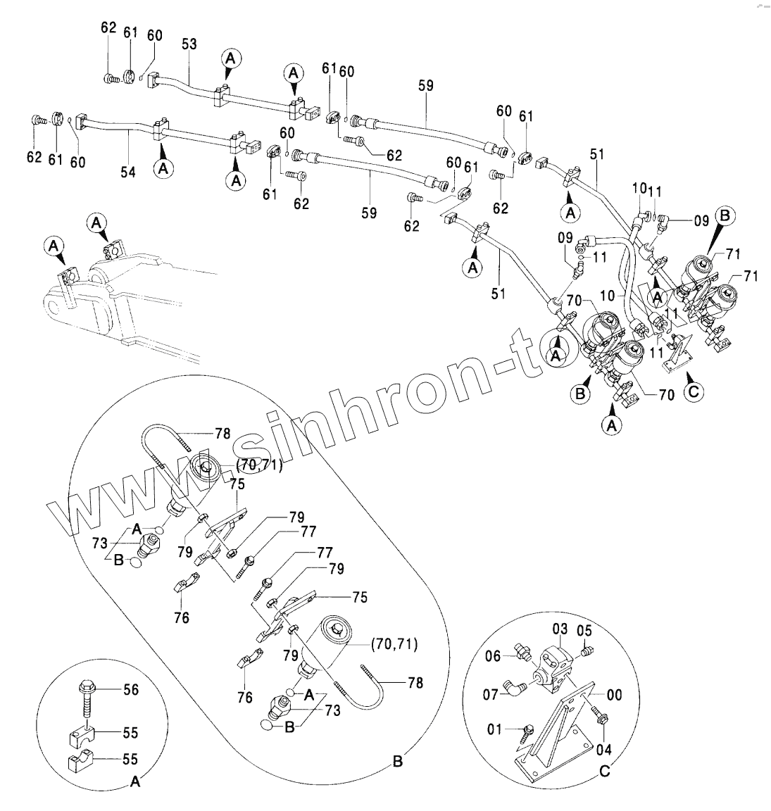 Каталог запасных частей к технике: Hitachi ZX-600. OKADA/FURUKAWA BREAKER PIPING (BOOM)