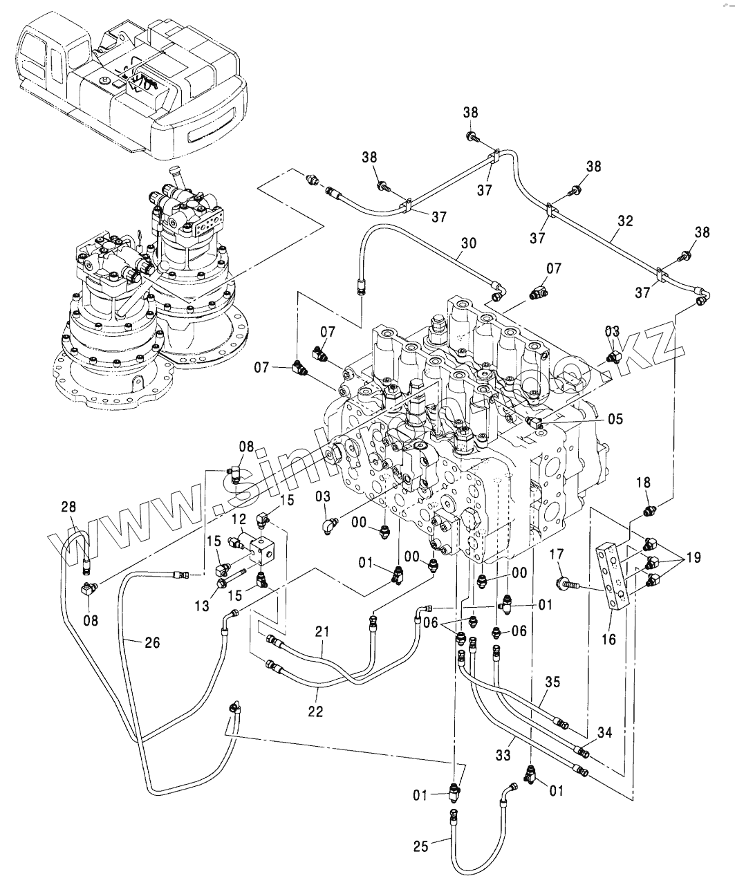 Каталог запасных частей к технике: Hitachi ZX-600. PILOT PIPING (2-1)