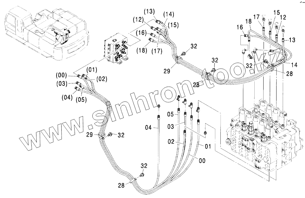 Каталог запасных частей к технике: Hitachi ZX-600. PILOT PIPING (5-1)
