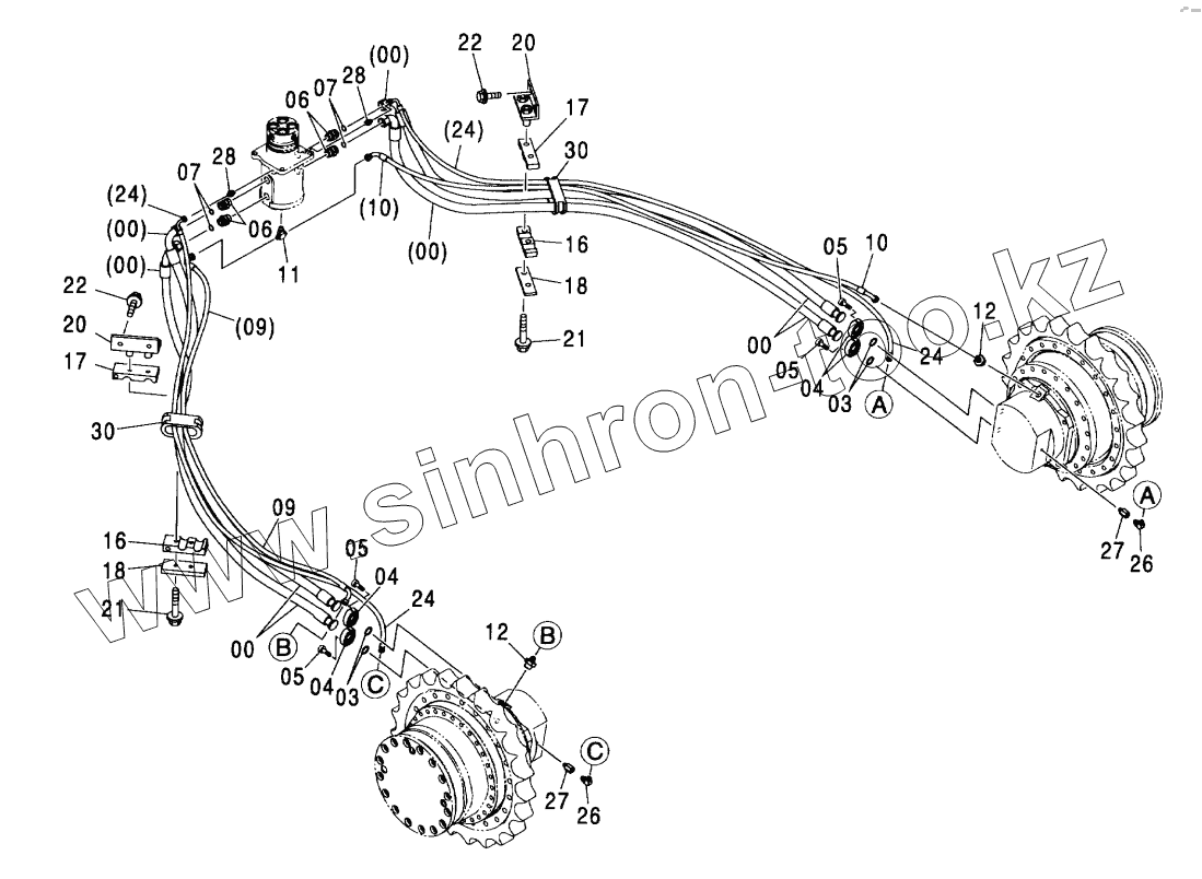 Каталог запасных частей к технике: Hitachi ZX-600. TRAVEL PIPING (STD. TRACK)