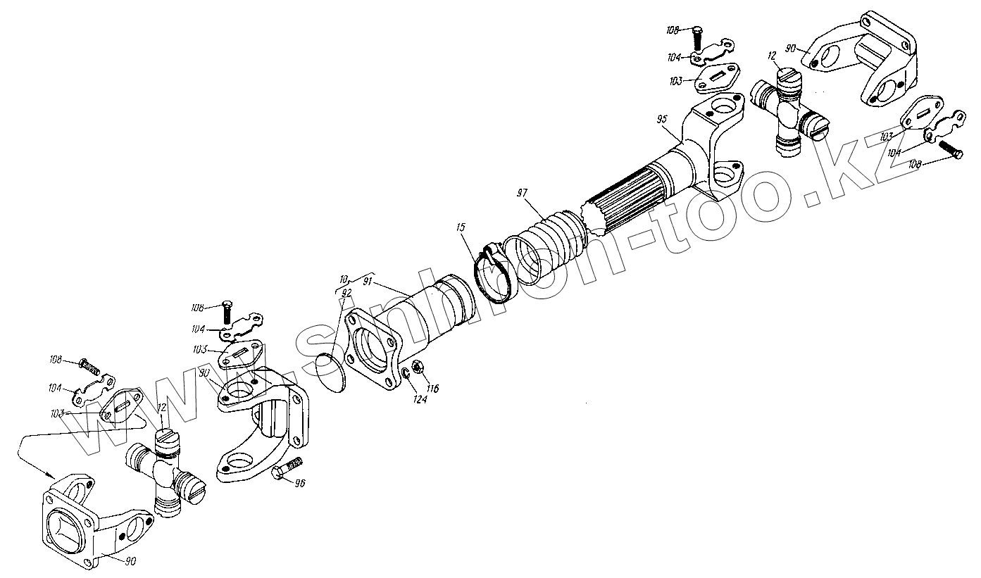 Каталог запасных частей к технике: ХТЗ МТ-ЛБ. Кардан центральный в сборе 8.12.030