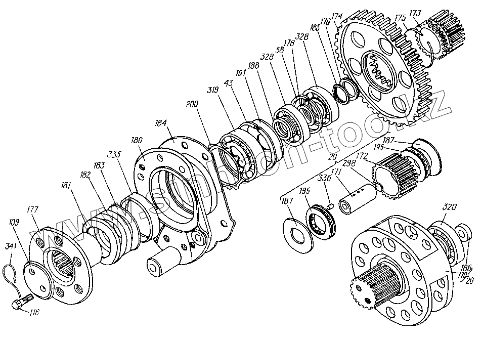 Каталог запасных частей к технике: ХТЗ МТ-ЛБ. Механизм поворота правый 8.10.041