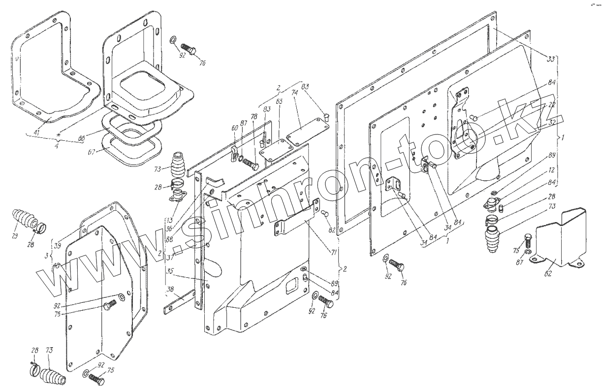 Каталог запасных частей к технике: ХТЗ МТ-ЛБ. Ограждение двигателя и главной передачи 6.37.001