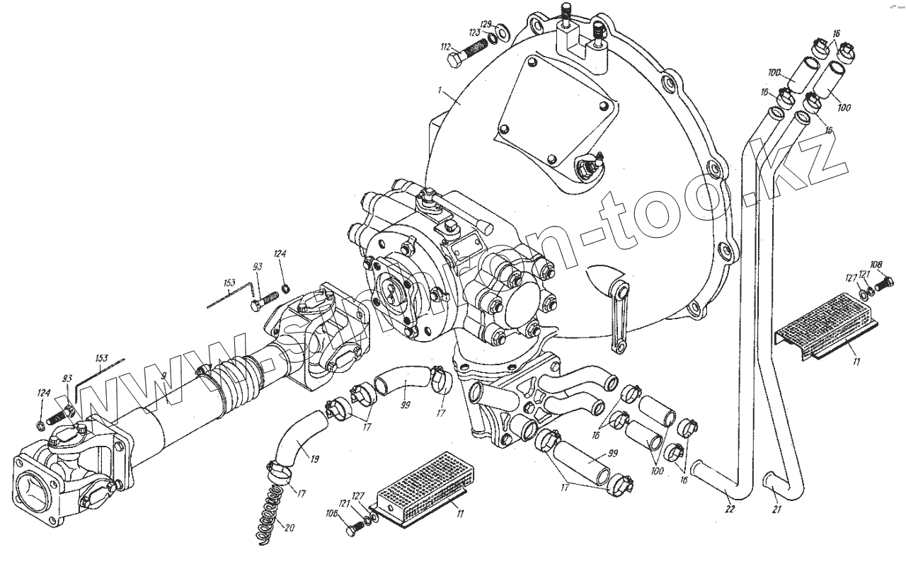 Каталог запасных частей к технике: ХТЗ МТ-ЛБ. Редуктор промежуточный. Установка 6.12.001