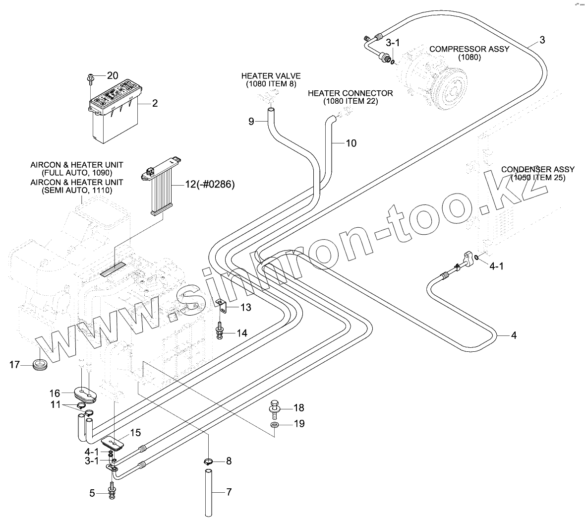 Каталог запасных частей к технике: Hyundai R140W-9. AIR CONDITIONER BOTTOM SUB