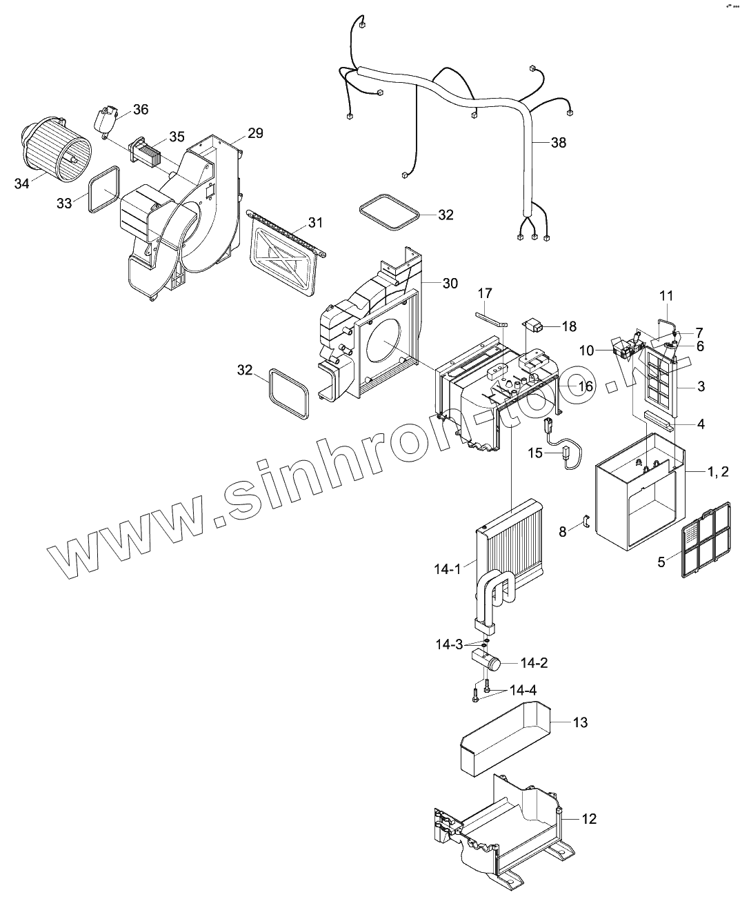 Каталог запасных частей к технике: Hyundai R140W-9. AIR CONDITIONER UNIT (SEMI AUTO)