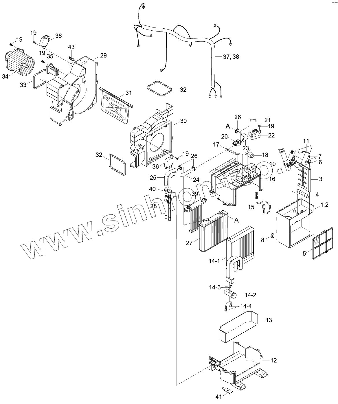 Каталог запасных частей к технике: Hyundai R140W-9. AIRCON & HEATER UNIT