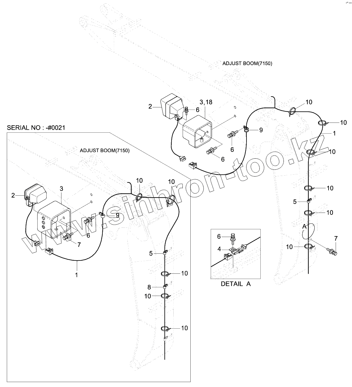 Каталог запасных частей к технике: Hyundai R140W-9. BOOM ELECTRIC (ADJUST BOOM)
