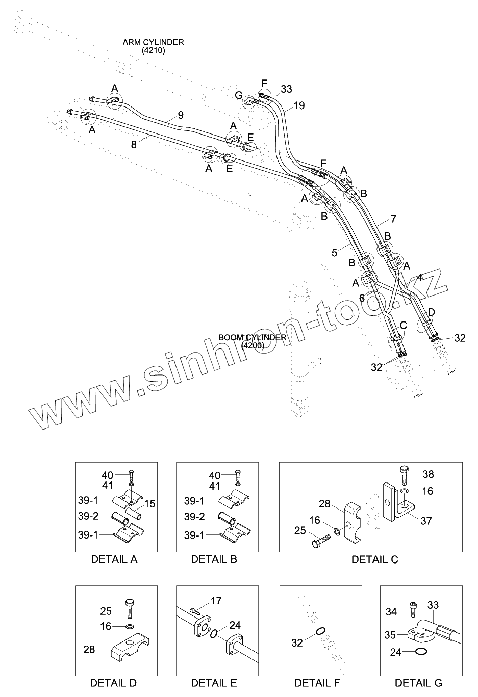 Каталог запасных частей к технике: Hyundai R140W-9. BOOM HYD PIPING (4.1M, OPT)