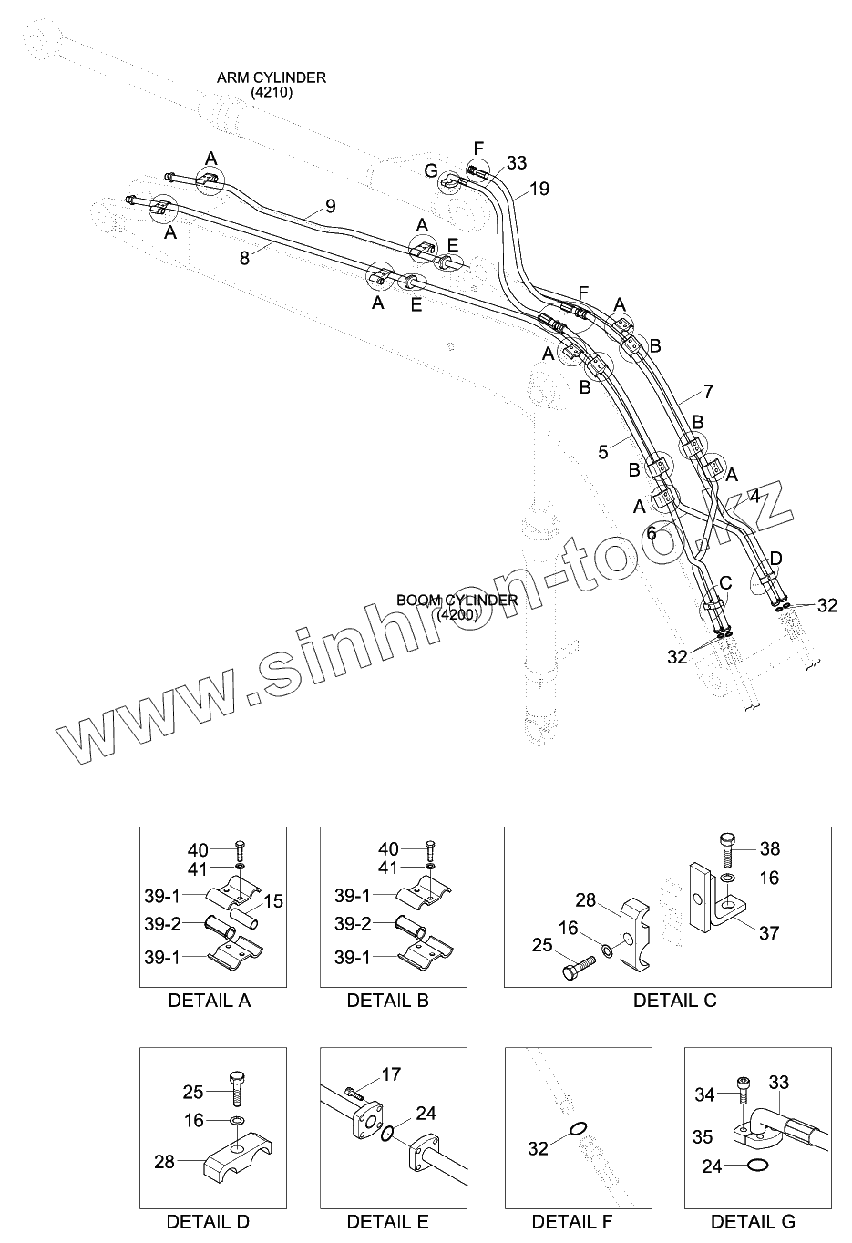 Каталог запасных частей к технике: Hyundai R140W-9. BOOM HYD PIPING (4.6M, STD)