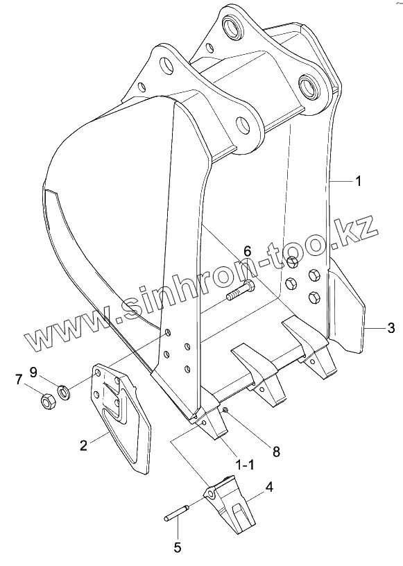 Каталог запасных частей к технике: Hyundai R140W-9. BUCKET (3 TEETH)
