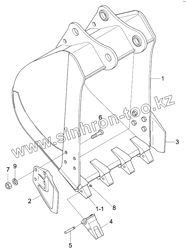 Каталог запасных частей к технике: Hyundai R140W-9. BUCKET (4 TEETH)