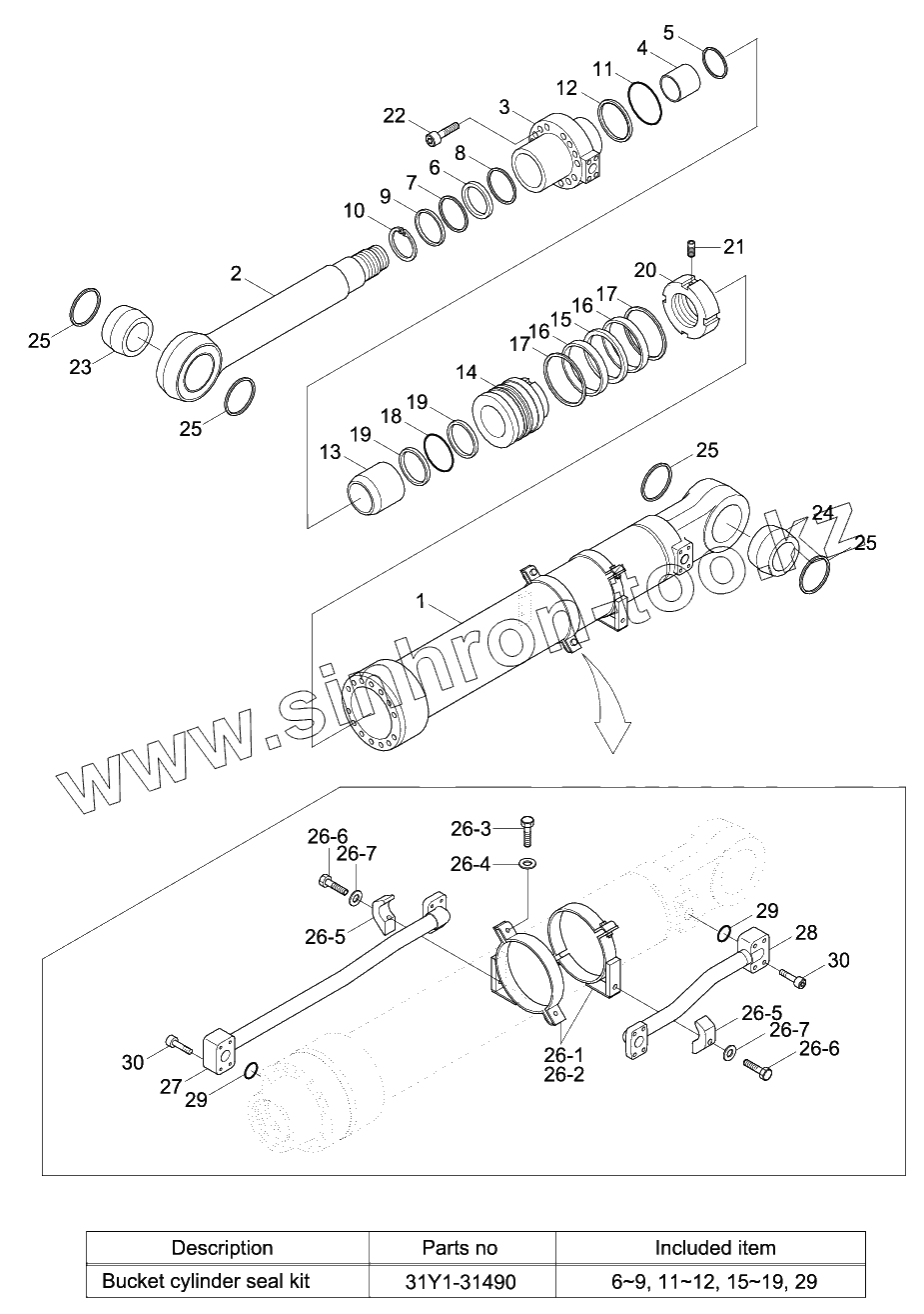Каталог запасных частей к технике: Hyundai R140W-9. BUCKET CYLINDER
