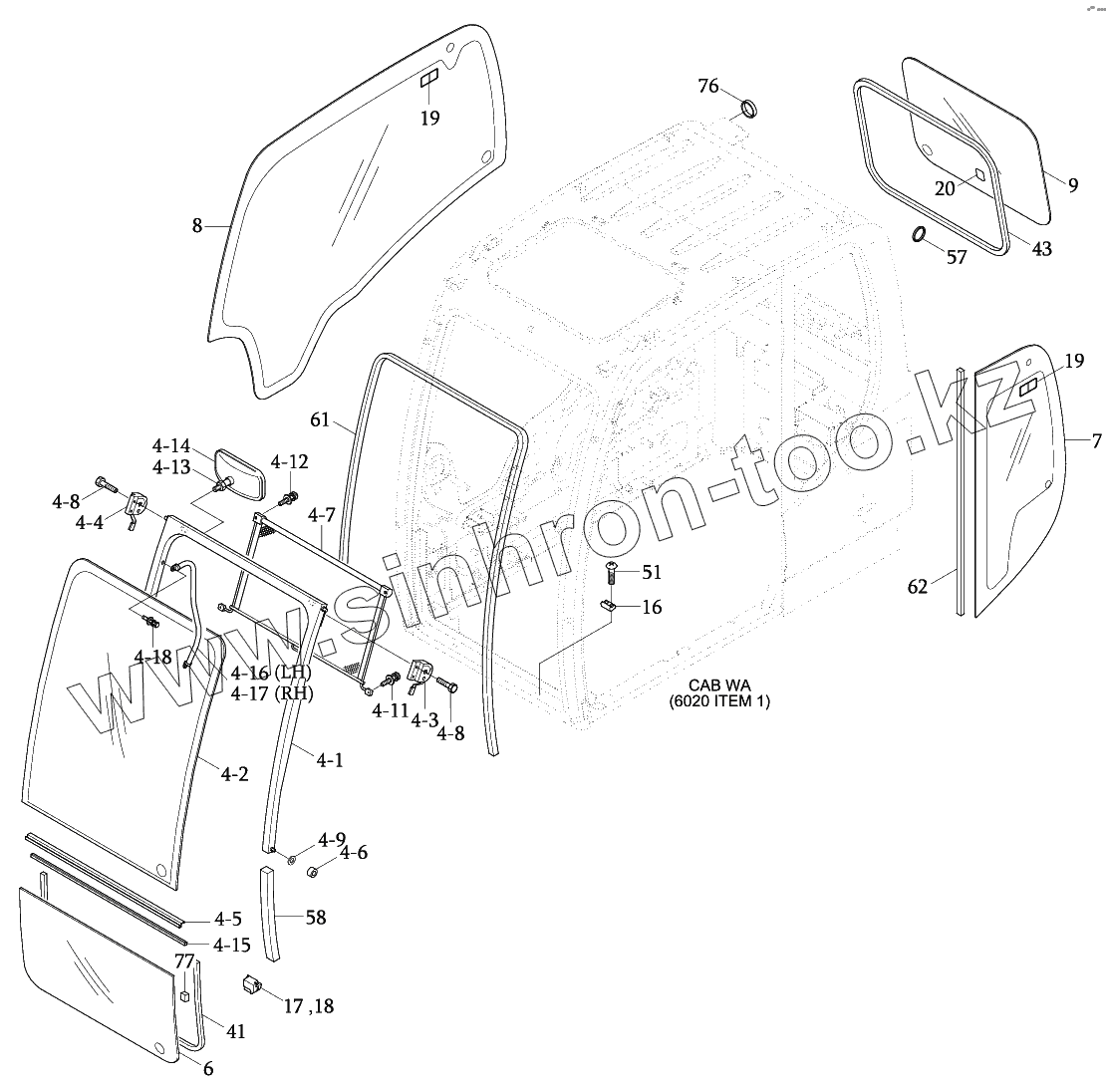 Каталог запасных частей к технике: Hyundai R140W-9. CAB ASSY (3/4)