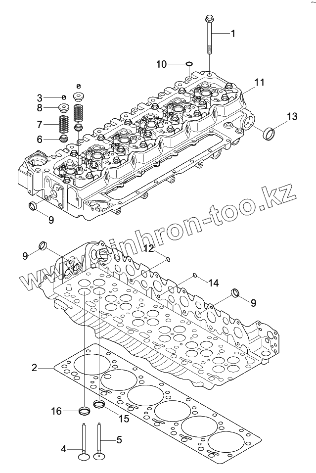 Каталог запасных частей к технике: Hyundai R140W-9. CYLINDER HEAD