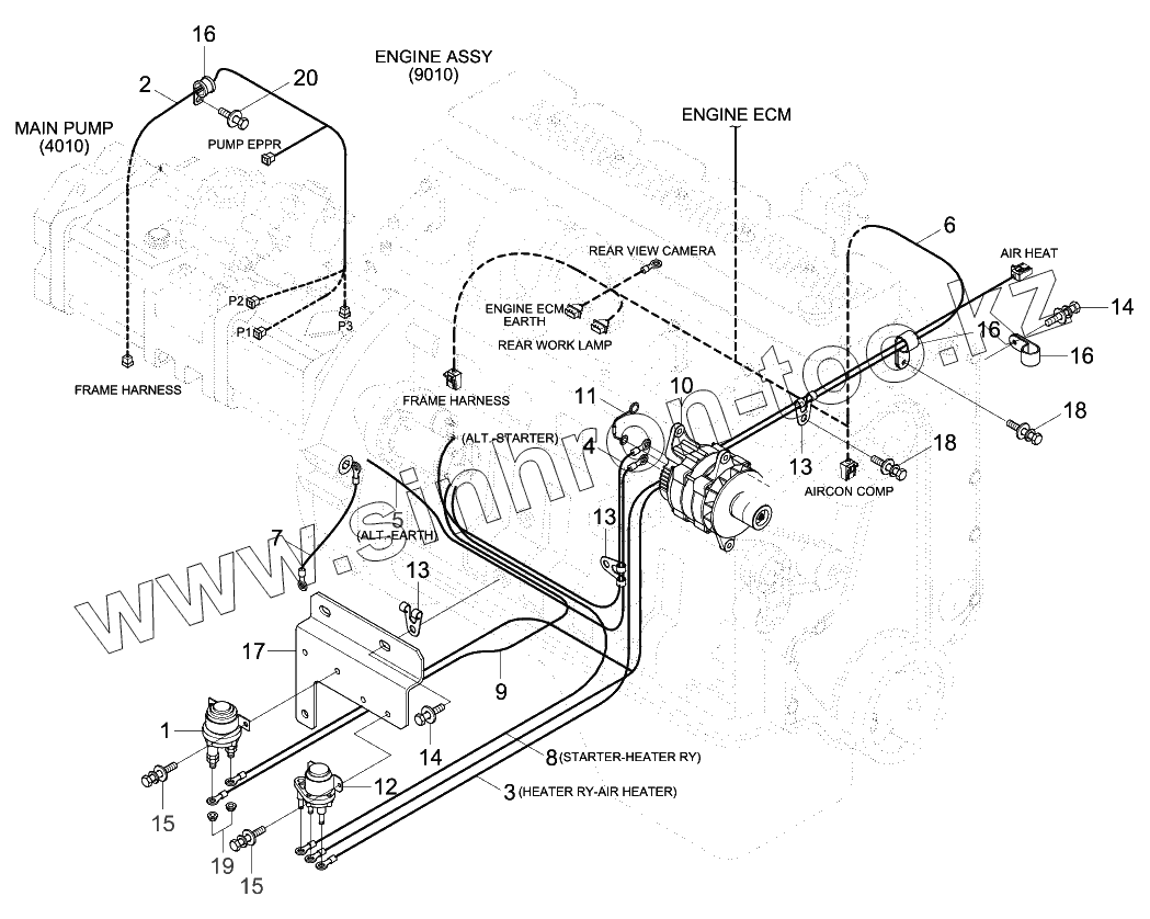 Каталог запасных частей к технике: Hyundai R140W-9. ENGINE ELECTRIC