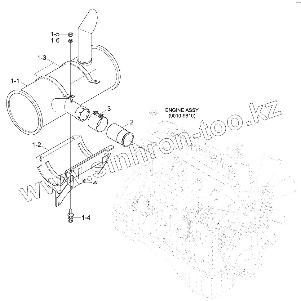 Каталог запасных частей к технике: Hyundai R140W-9. EXHAUST SYSTEM