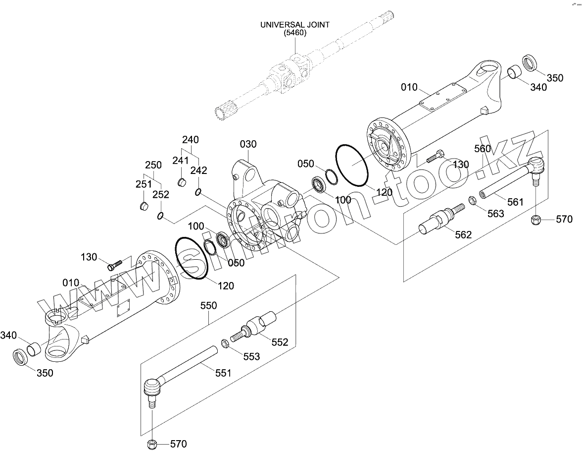 Каталог запасных частей к технике: Hyundai R140W-9. FRONT AXLE CASING (#0074-)
