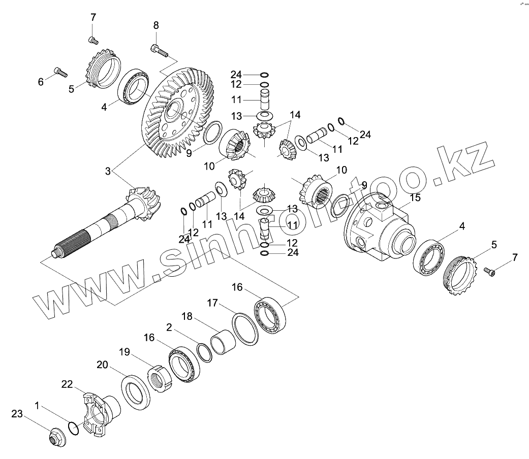 Каталог запасных частей к технике: Hyundai R140W-9. FRONT AXLE DIFFERENTIAL (-#0073)