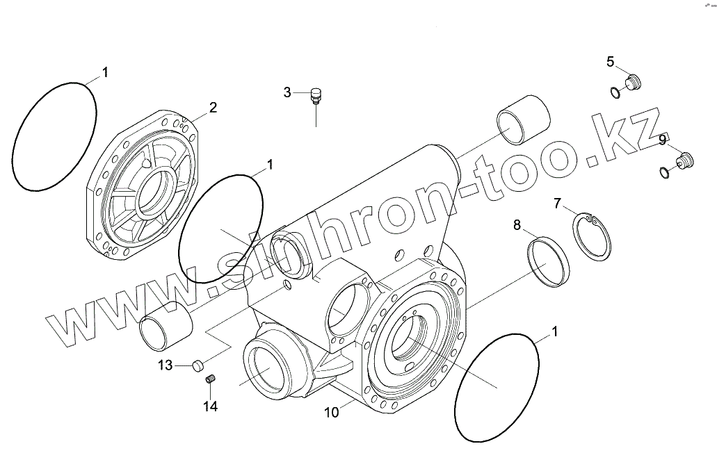 Каталог запасных частей к технике: Hyundai R140W-9. FRONT AXLE HOUSING (-#0073)