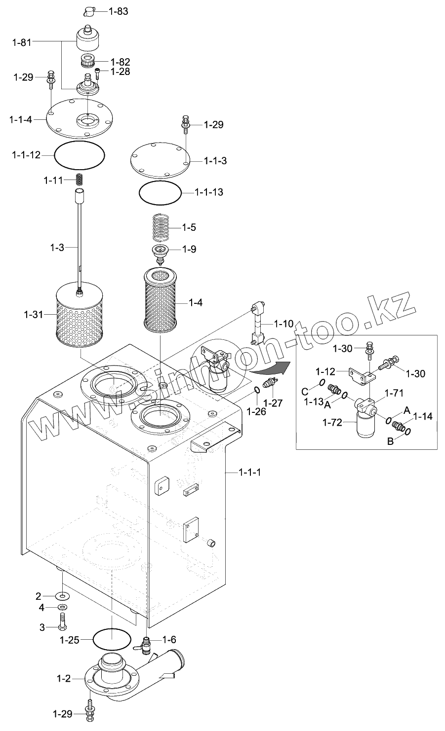 Каталог запасных частей к технике: Hyundai R140W-9. HYDRAULIC TANK