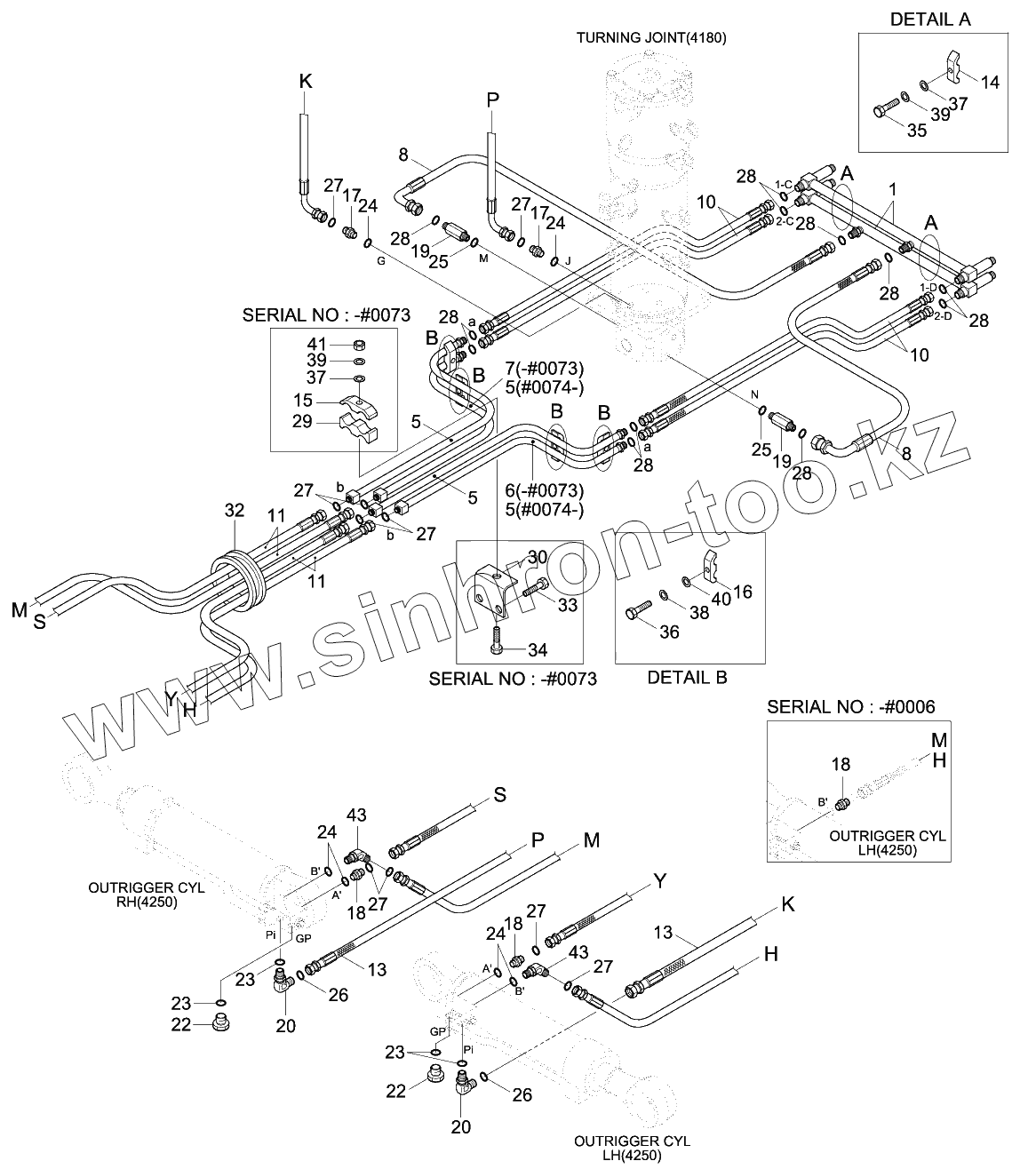 Каталог запасных частей к технике: Hyundai R140W-9. LOWER HYD PIPING 2 (4 OUTRIGGER, -#0309)