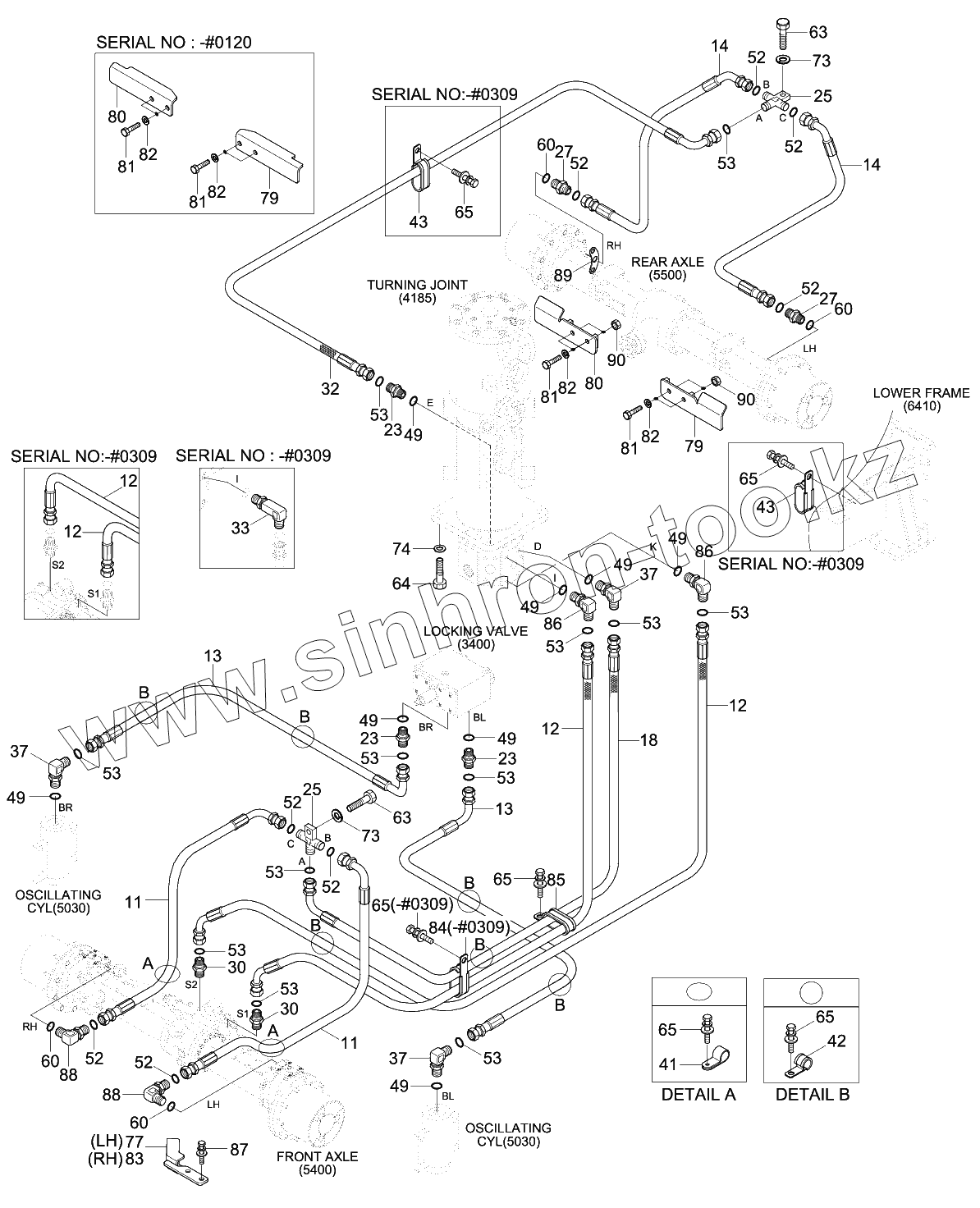 Каталог запасных частей к технике: Hyundai R140W-9. LOWER HYD PIPING 2 (#0074-)