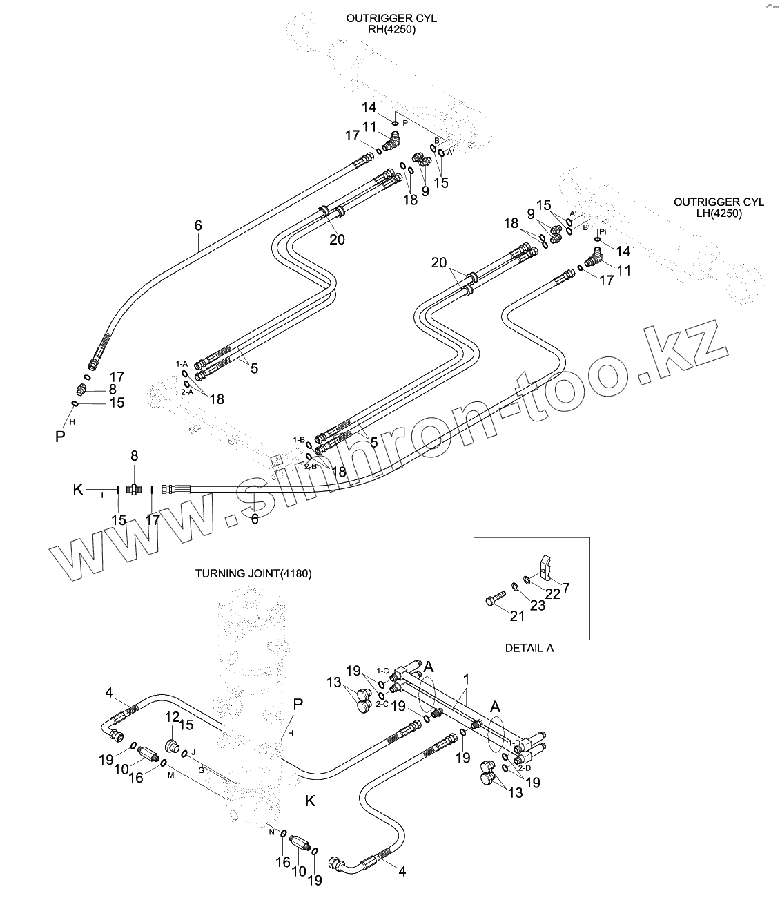Каталог запасных частей к технике: Hyundai R140W-9. LOWER HYD PIPING (2 OUTRIGGER, -#0309)