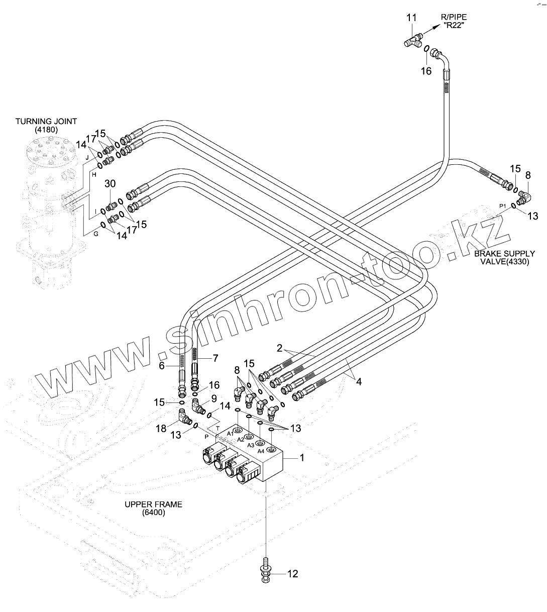 Каталог запасных частей к технике: Hyundai R140W-9. PILOT HYD PIPING (4 OUTRIGGER)