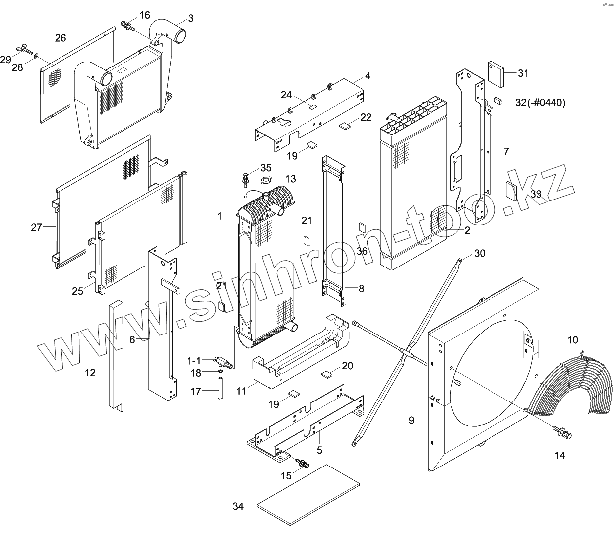Каталог запасных частей к технике: Hyundai R140W-9. RADIATOR ASSY