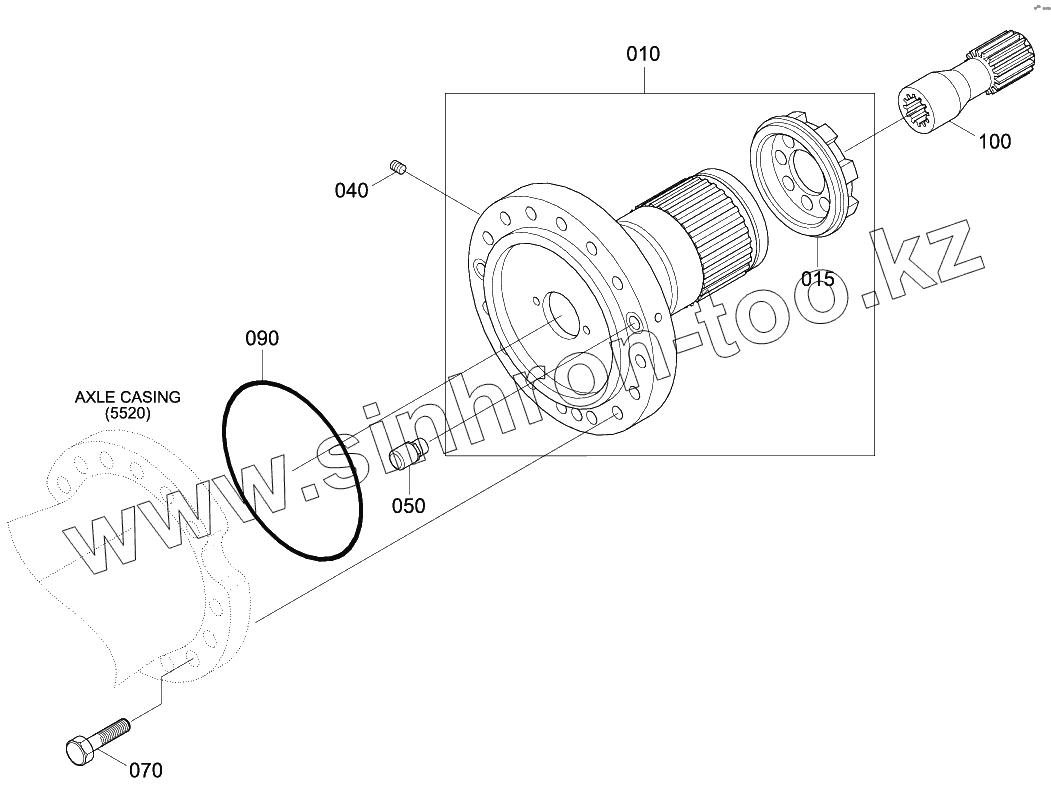 Каталог запасных частей к технике: Hyundai R140W-9. REAR AXLE HUB CARRIER (#0074-)