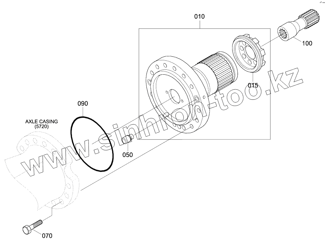 Каталог запасных частей к технике: Hyundai R140W-9. REAR AXLE HUB CARRIER (#0492-)