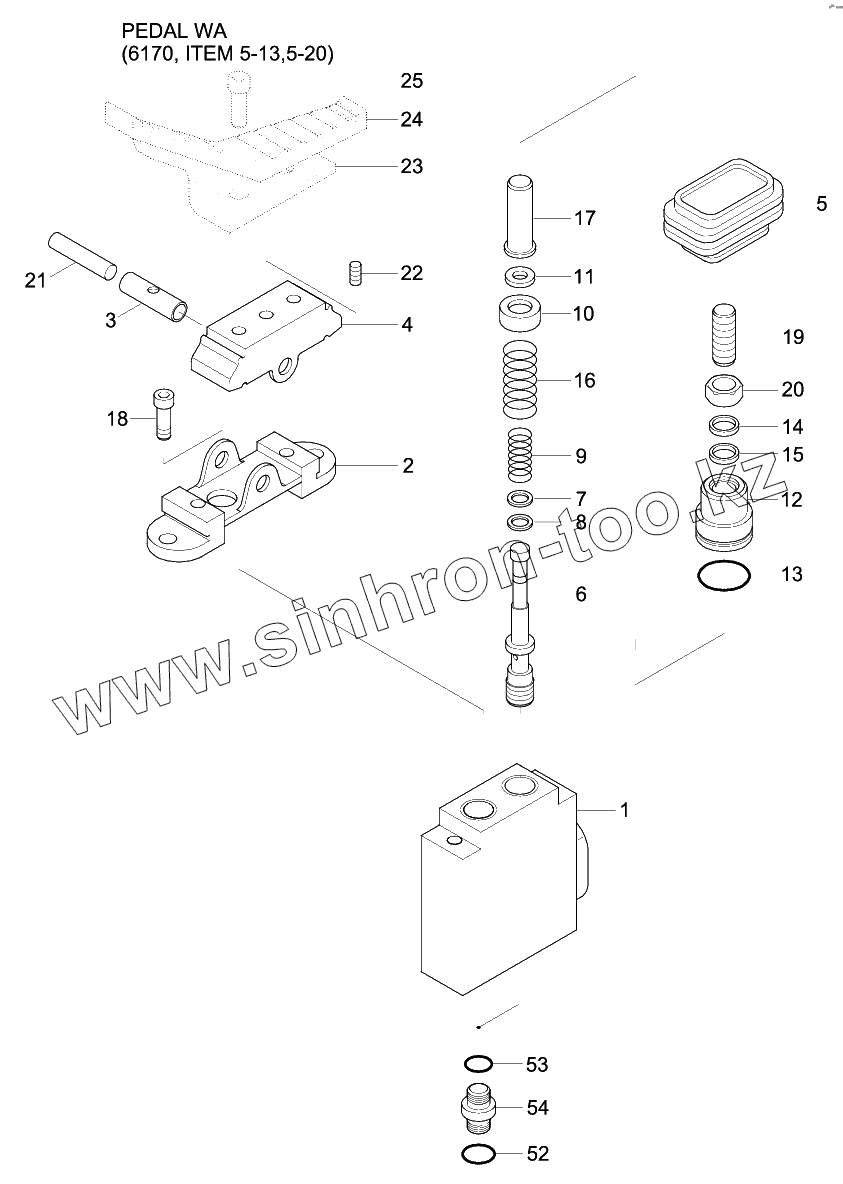 Каталог запасных частей к технике: Hyundai R140W-9. SINGLE PEDAL (DOUBLE ACTING)