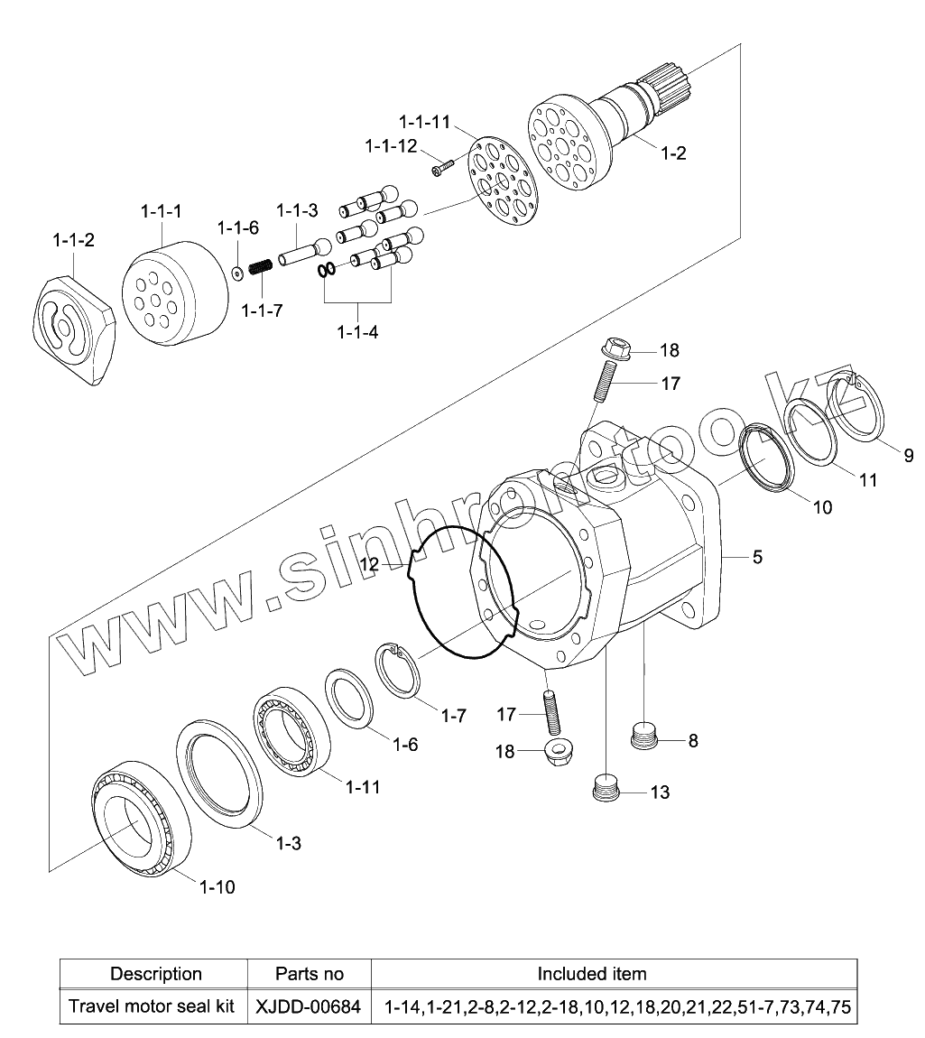 Каталог запасных частей к технике: Hyundai R140W-9. TRAVEL MOTOR (1/2)