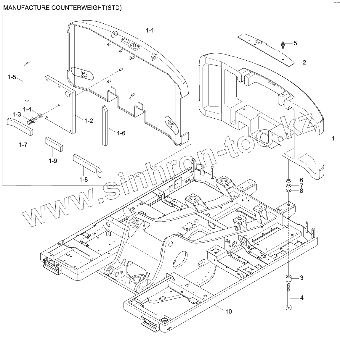 Каталог запасных частей к технике: Hyundai R140W-9. UPPER FRAME & COUNTERWEIGHT