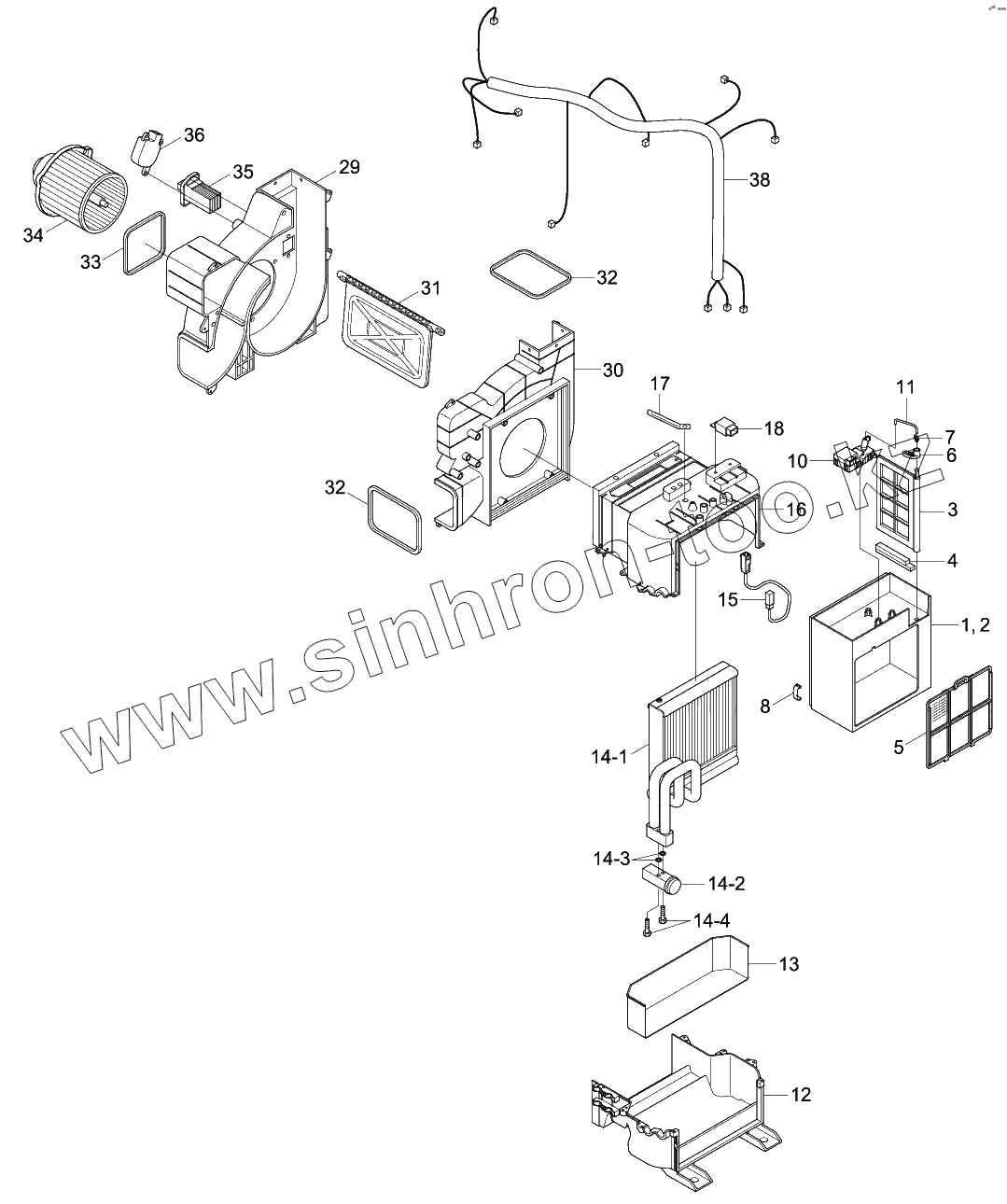 Каталог запасных частей к технике: Hyundai R140W-9S. AIR CONDITIONER UNIT (SEMI AUTO)