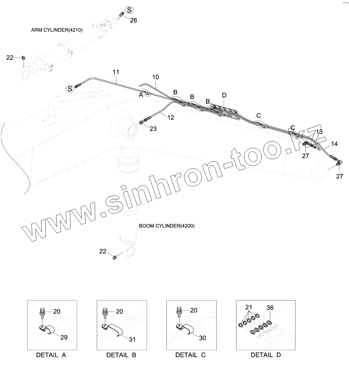 Каталог запасных частей к технике: Hyundai R140W-9S. BOOM GREASE LUB SYSTEM (4.6M, STD)