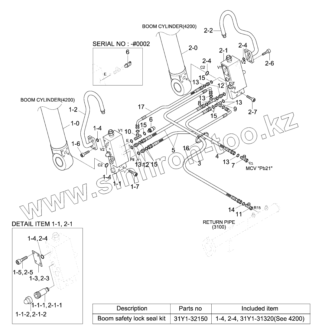 Каталог запасных частей к технике: Hyundai R140W-9S. BOOM SAFETY LOCK SYSTEM