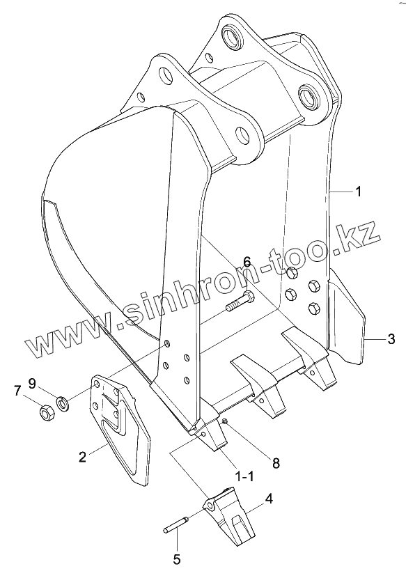 Каталог запасных частей к технике: Hyundai R140W-9S. BUCKET (3 TEETH)