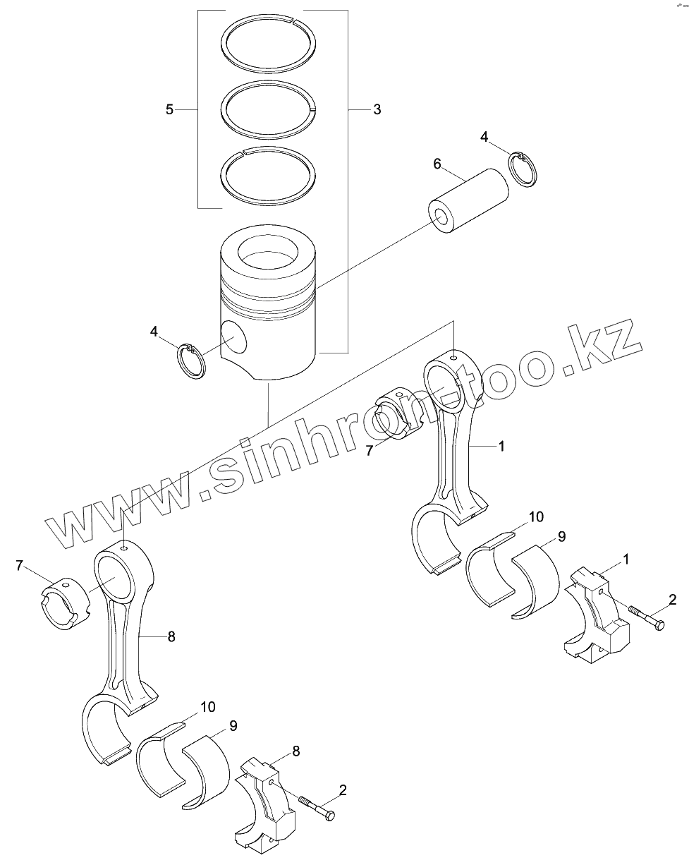 Каталог запасных частей к технике: Hyundai R140W-9S. CONNECTING ROD & PISTON