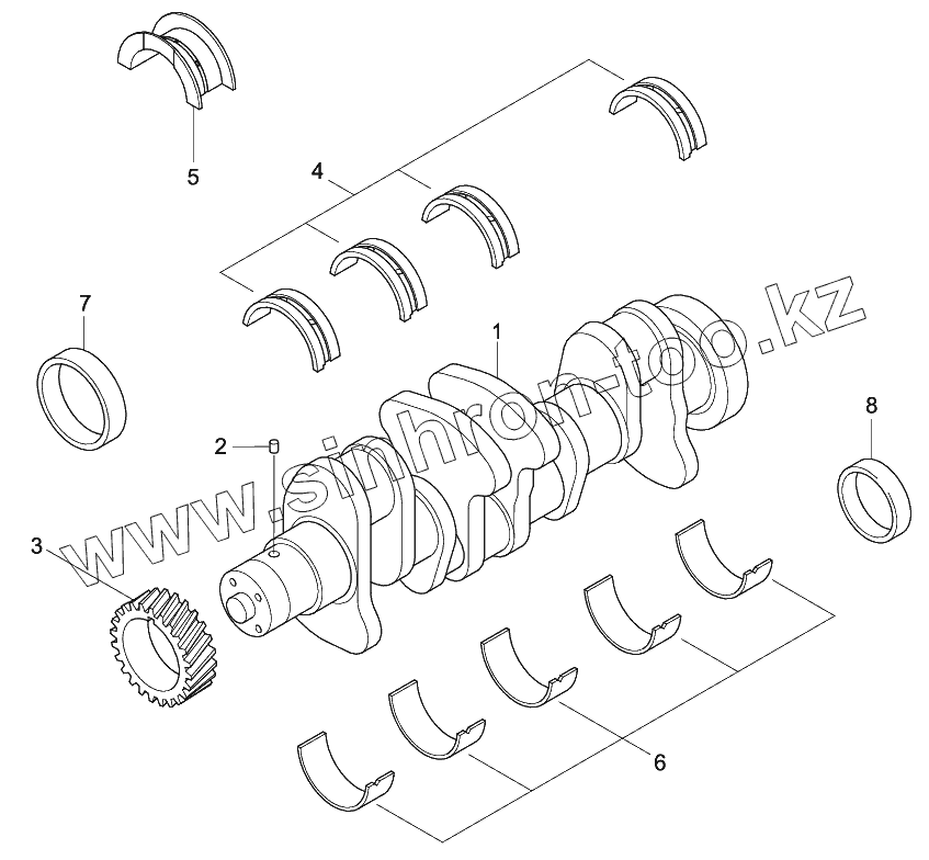 Каталог запасных частей к технике: Hyundai R140W-9S. CRANKSHAFT & M/BEARINGS