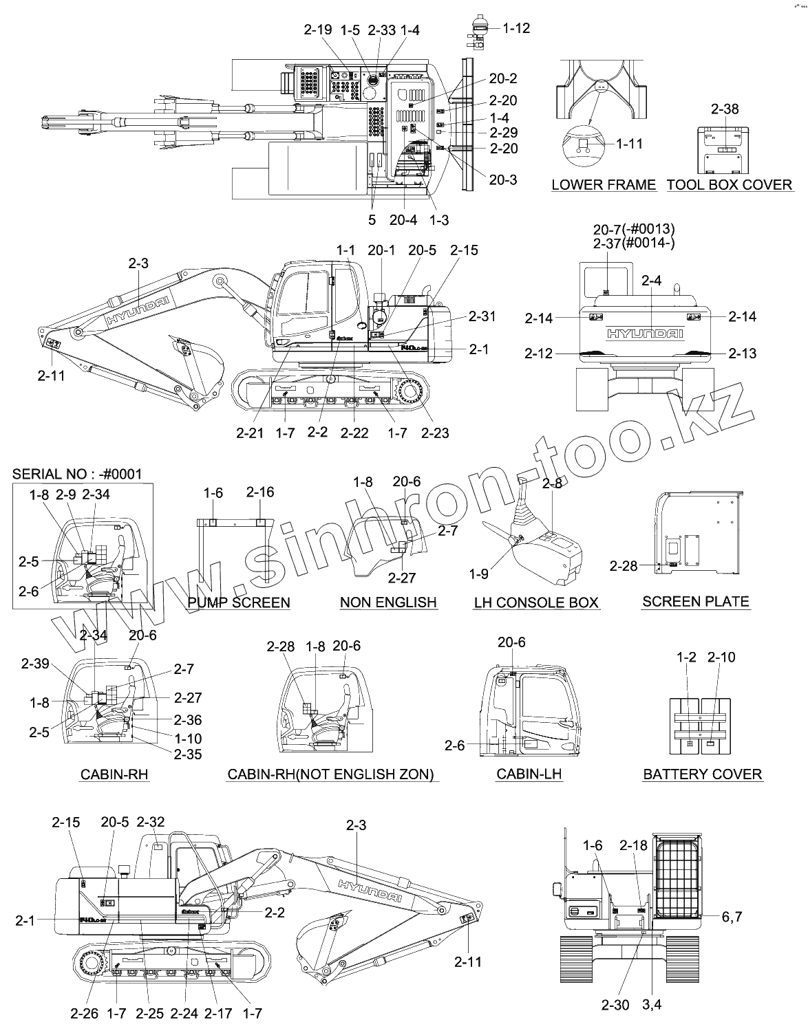 Каталог запасных частей к технике: Hyundai R140W-9S. DECALS