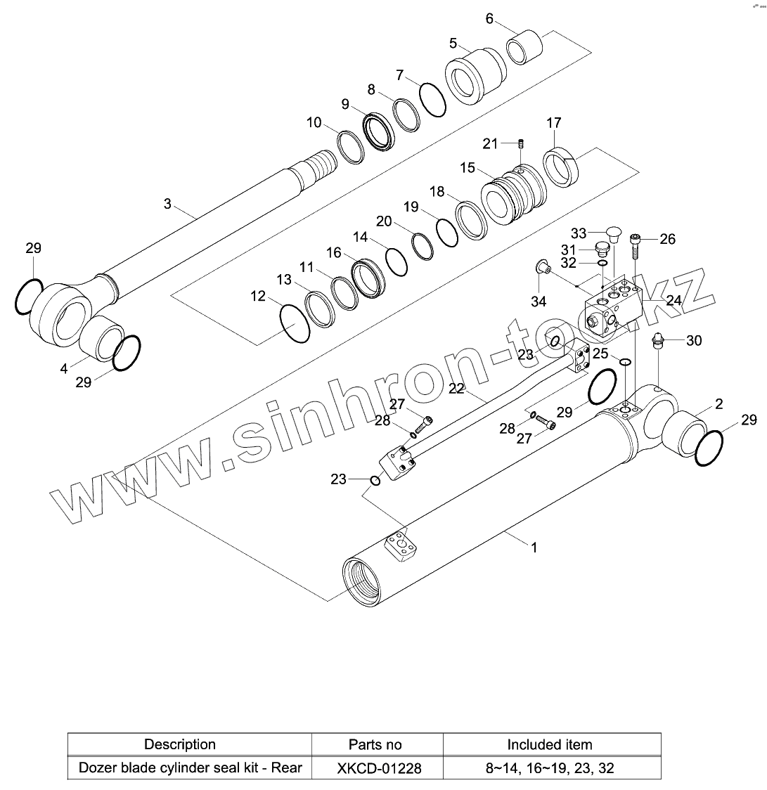 Каталог запасных частей к технике: Hyundai R140W-9S. DOZER BLADE CYLINDER (REAR)