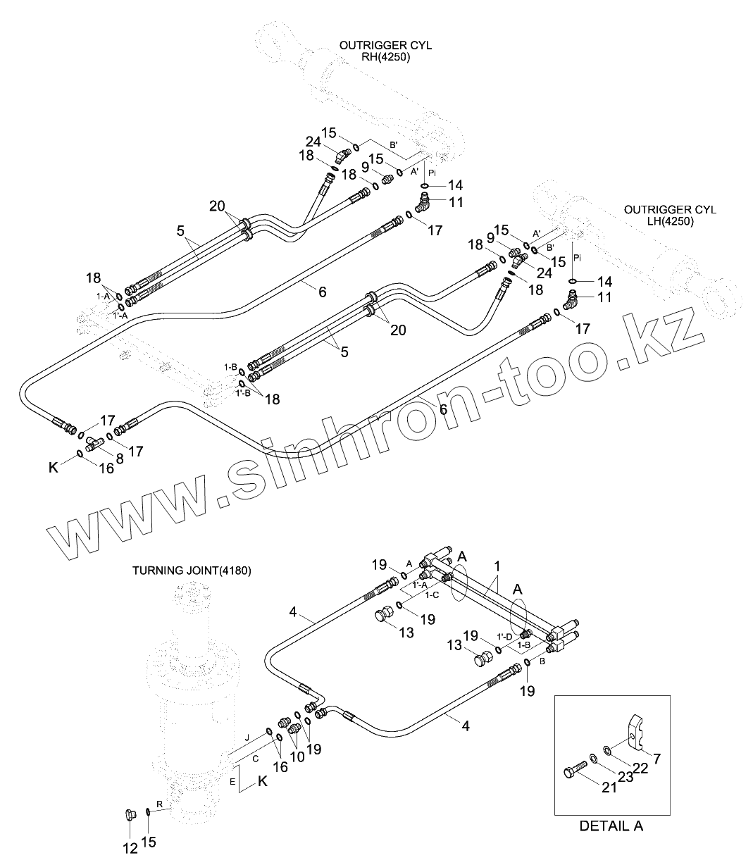 Каталог запасных частей к технике: Hyundai R140W-9S. LOWER HYD PIPING (2 OUTRIGGER, -#0014)