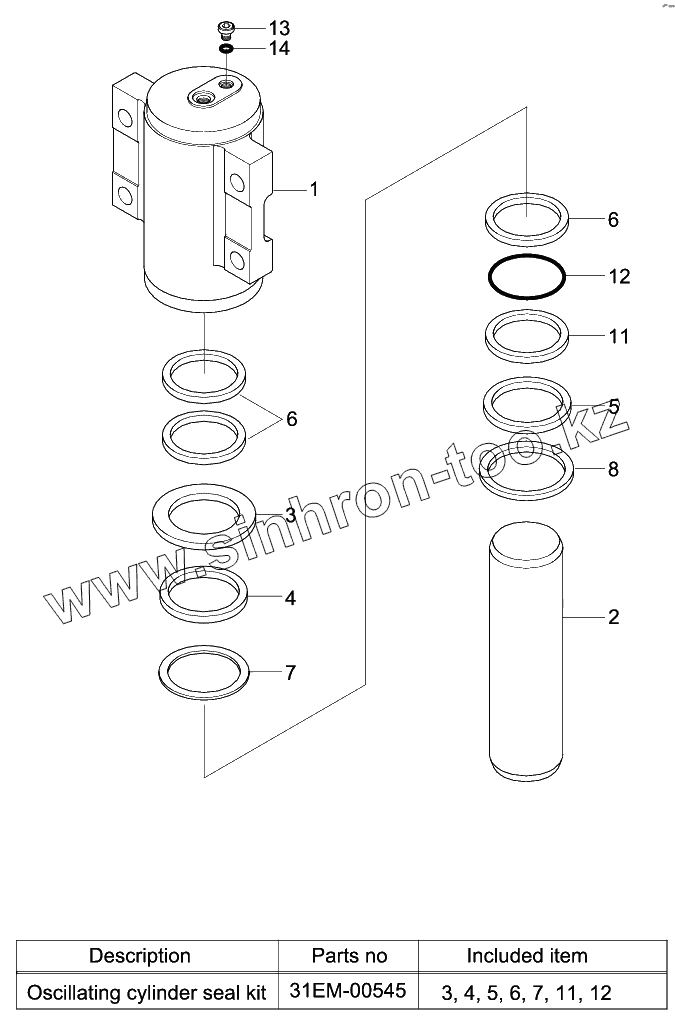 Каталог запасных частей к технике: Hyundai R140W-9S. OSCILLATING CYLINDER